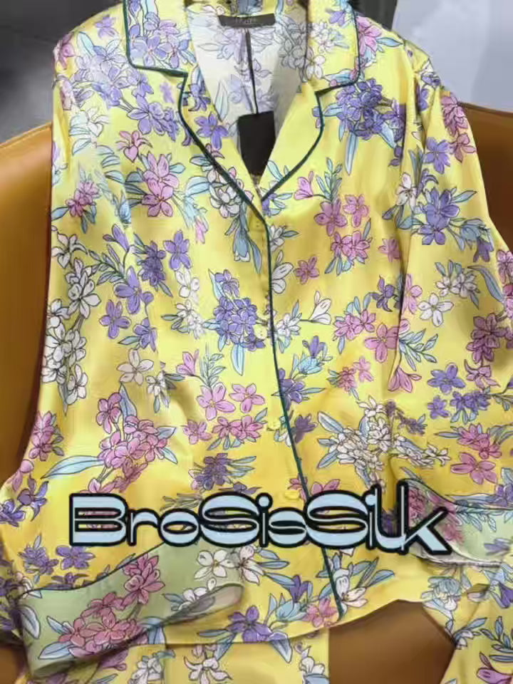 Women's 19MM 100% Silk Pajama Set Print Silk Sleepwear